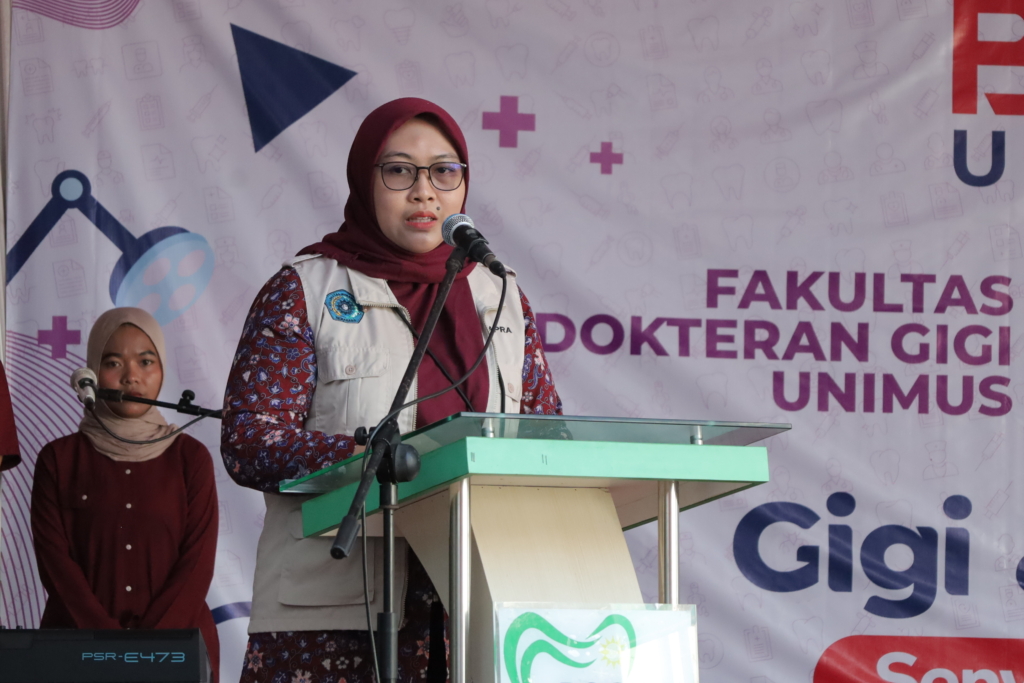 Dalam sambutannya, Dekan FKG UNIMUS Dr. drg. Risyandi Anwar, Sp.KGA menyampaikan bahwa pelaksanaan BKGN menjadi bentuk nyata peran perguruan tinggi dalam memberikan kontribusi langsung kepada masyarakat melalui pelayanan dan edukasi kesehatan gigi. “Melalui kegiatan ini, kami ingin membangun kesadaran masyarakat bahwa menjaga kesehatan gigi bukan hanya tentang estetika, tetapi bagian dari kesehatan tubuh secara menyeluruh. Edukasi sejak dini dan pelayanan preventif menjadi kunci utama,” ujarnya. Sementara itu, Direktur RSGM UNIMUS drg. Budiono, M.Pd. menegaskan pentingnya keberadaan rumah sakit pendidikan yang memberikan manfaat nyata bagi masyarakat. “Kami tidak ingin RSGM hanya menjadi menara gading yang berdiri tegak dan megah, namun tidak bermanfaat bagi masyarakat sekitar. Melalui BKGN ini, kami berkomitmen agar layanan dan edukasi kesehatan yang kami berikan benar-benar dapat dirasakan manfaatnya oleh masyarakat luas,” ungkapnya.